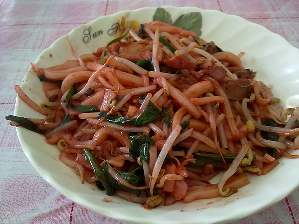 炒粄條,萬巒有很多家的炒粄條都是紅色的,雖然很紅但並不辣。
